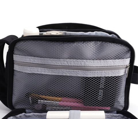 - **Separazione tra asciutto e bagnato** – Mantiene gli articoli da toeletta e i cosmetici ordinatamente separati.