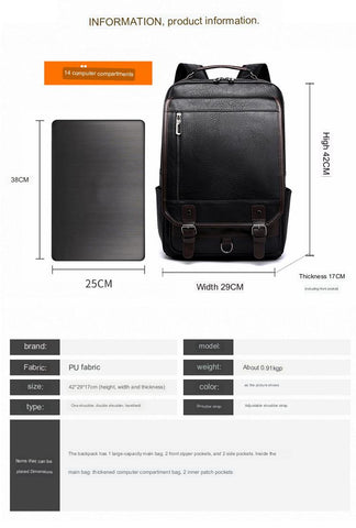 **Zaino da lavoro da uomo** – Elegante design retrò in pelle PU con ampia capacità (29×17×42 cm). Perfetto per lavoro, scuola o viaggi, offre resistenza e uno stile professionale ma casual. Ideale per studenti e professionisti! 🎒💼 #ZainoUfficio #EleganteEFunzionale