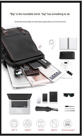 Zaino da lavoro da uomo, grande, in PU, stile retrò, casual, per studenti e scuole