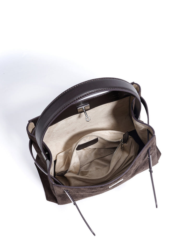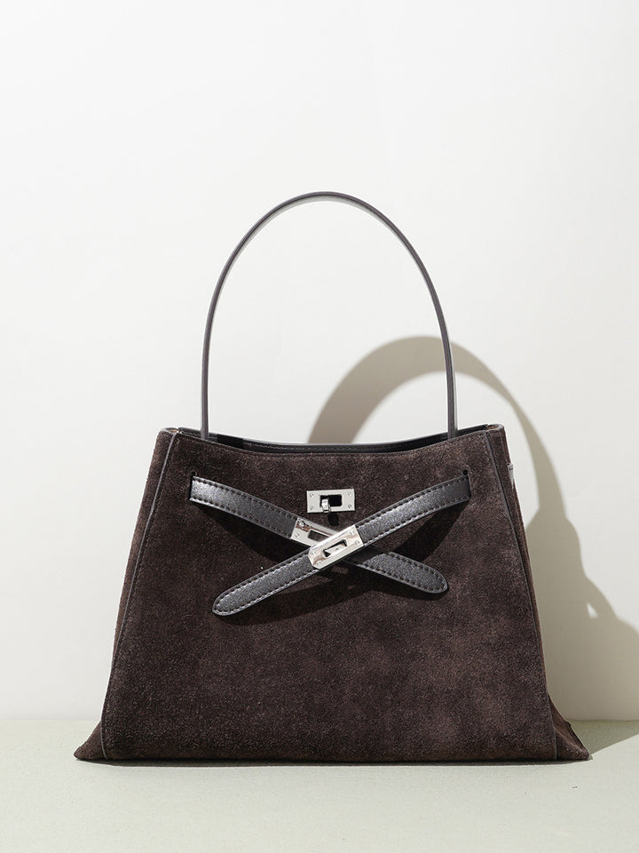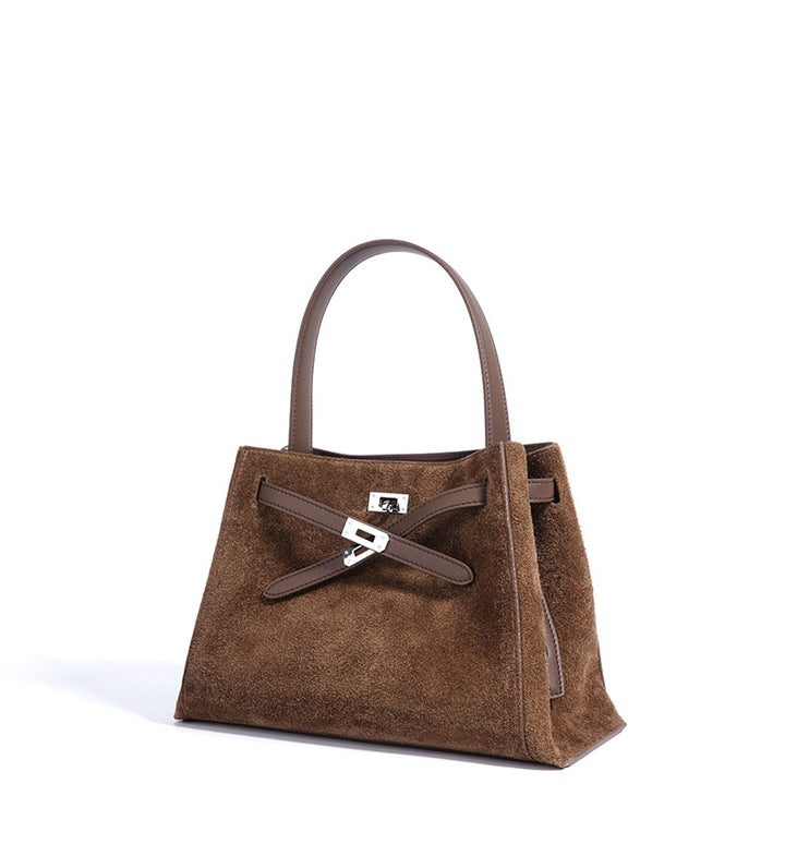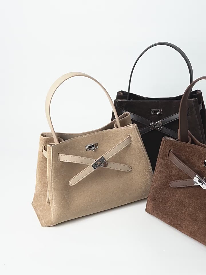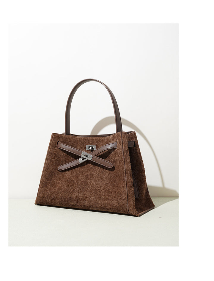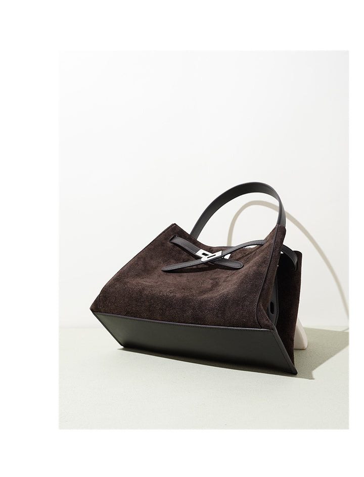 A chic and spacious blend of genuine leather and luxurious suede, this versatile bag is perfect for the modern professional woman.Its sleek design offers a sophisticated touch to any outfit, ideal for work or casual outings.