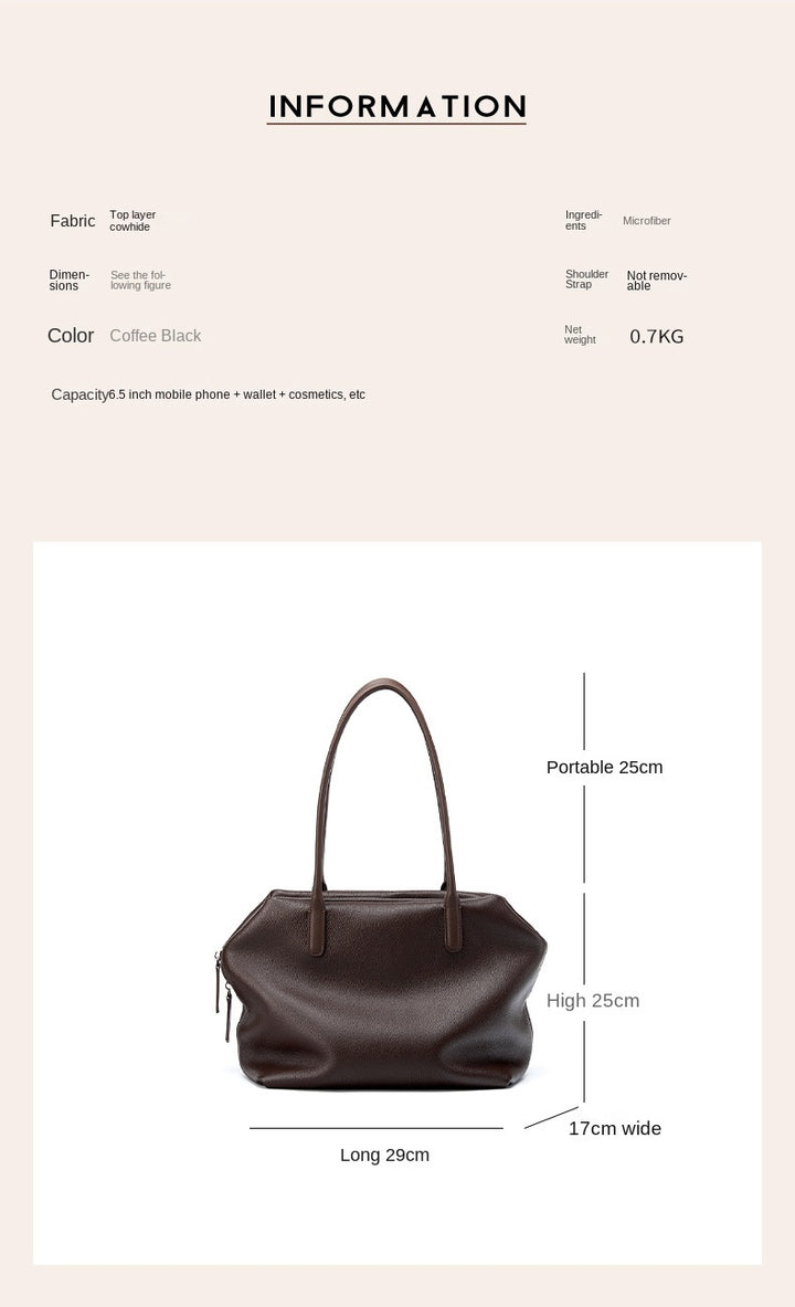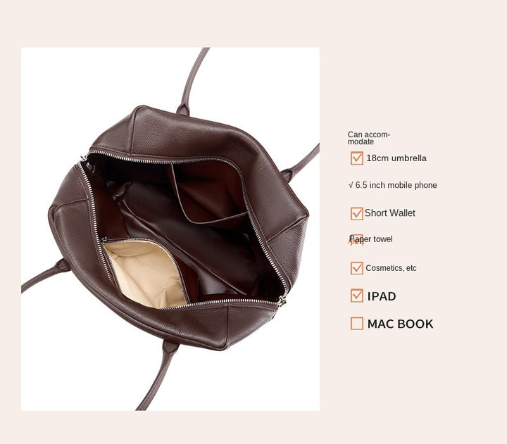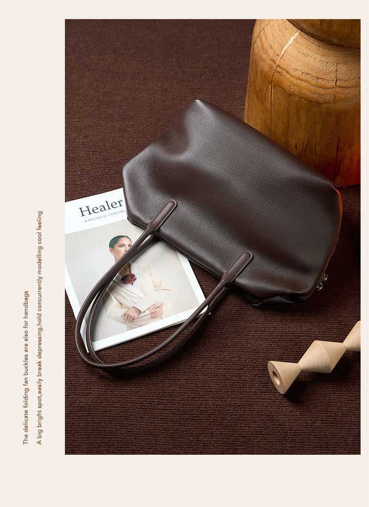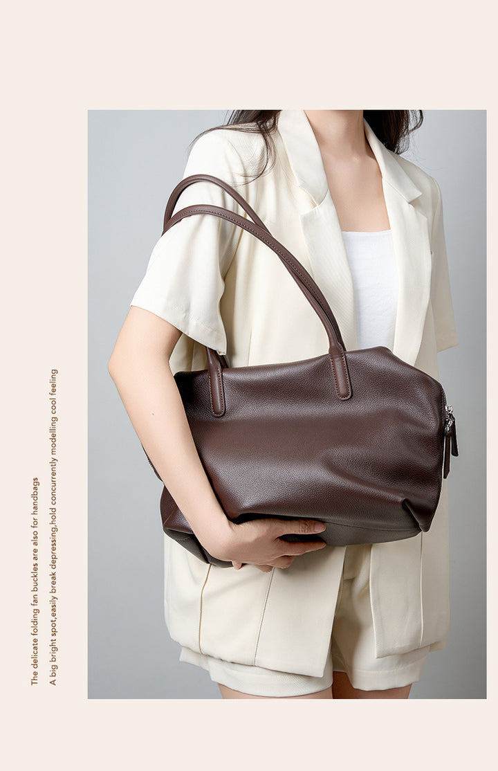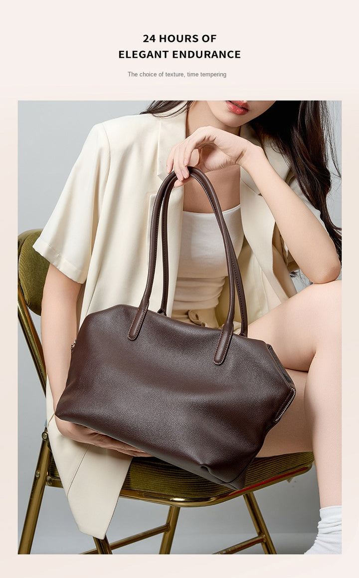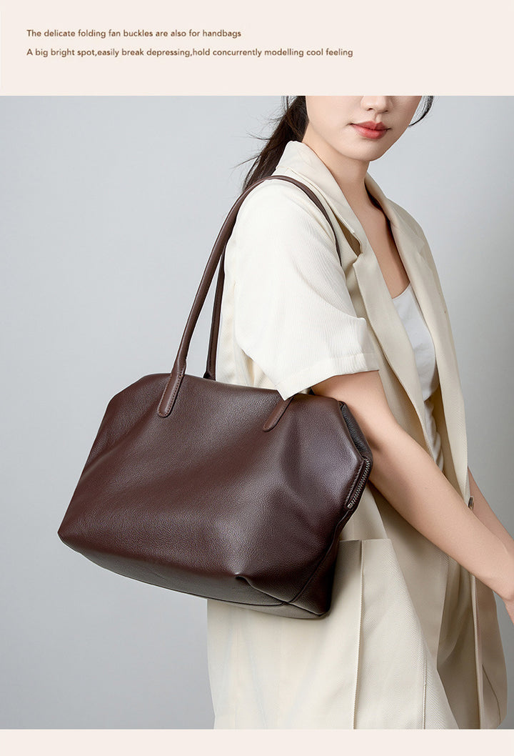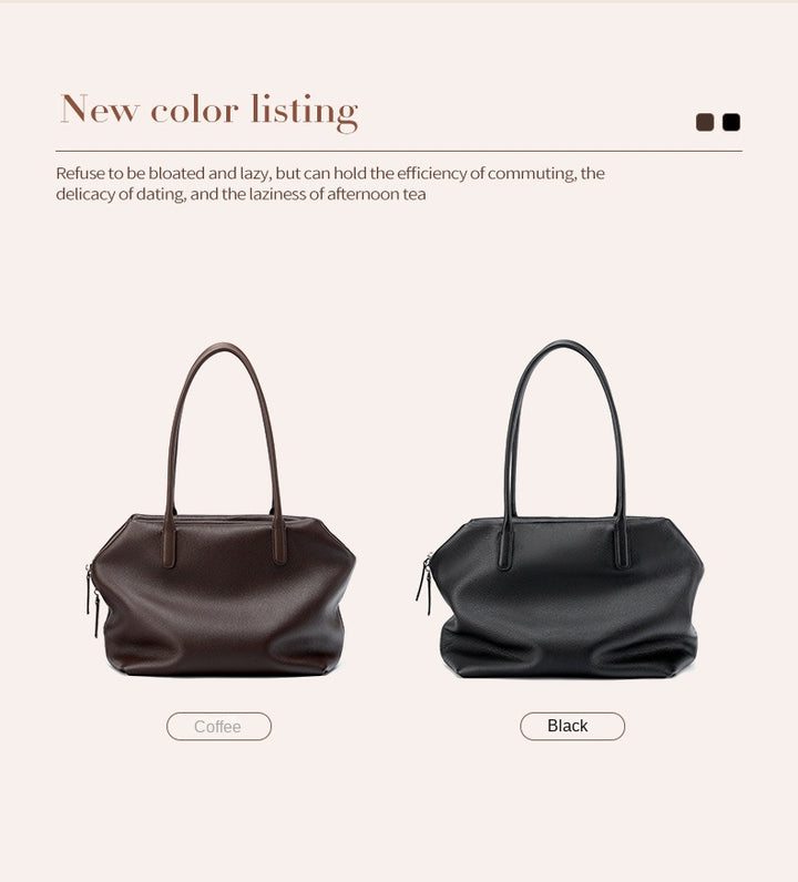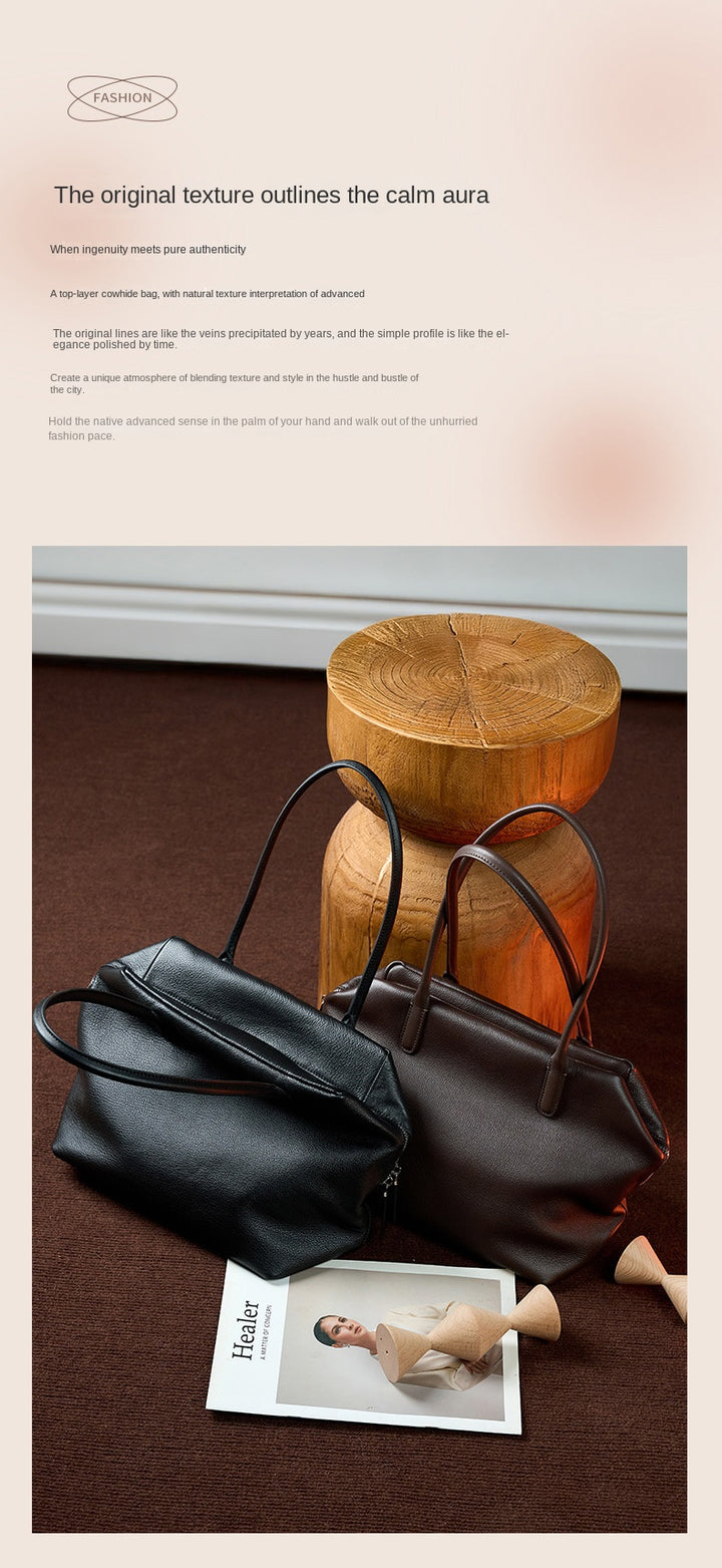 Large Capacity New Women's Handbag Light Luxury Single Shoulder Bag Casual Commuting High-end Feel Top Layer Cowhide Underarm Tote Bag