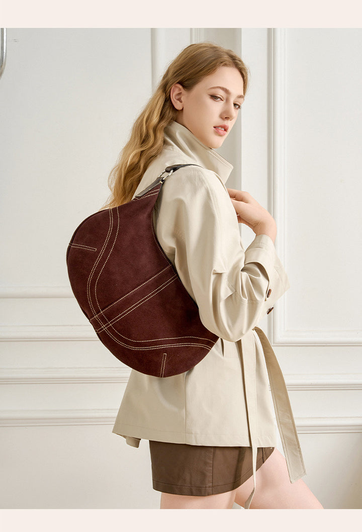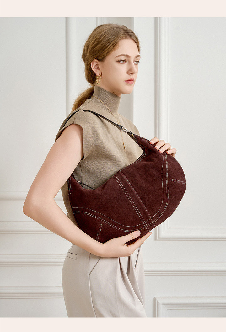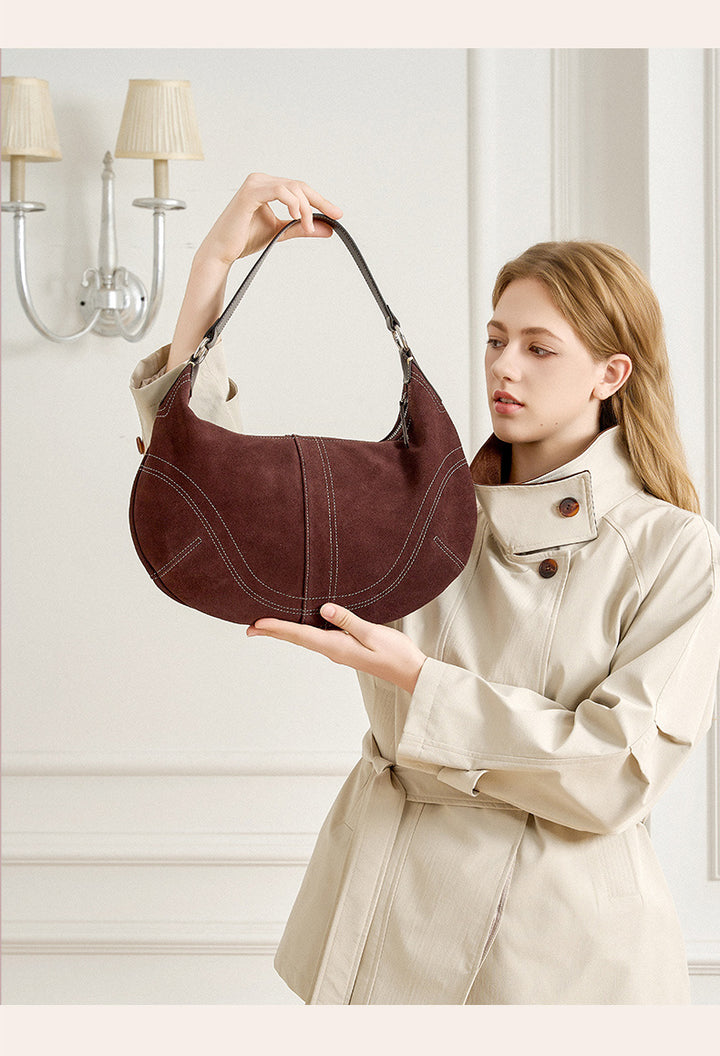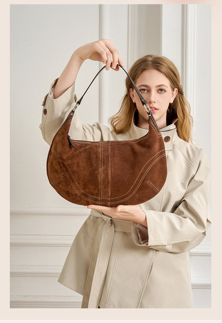 Suede Leather Crossbody Dumpling Bag Women's Shoulder Bag Underarm Bag