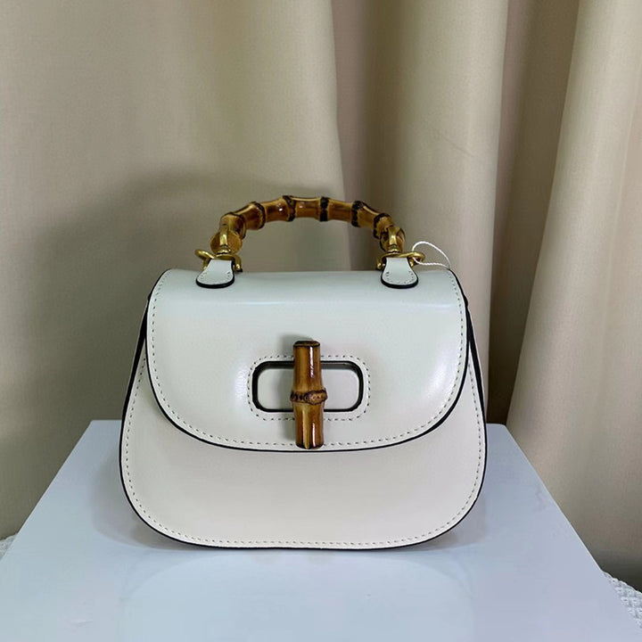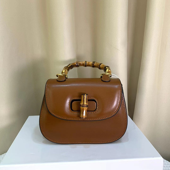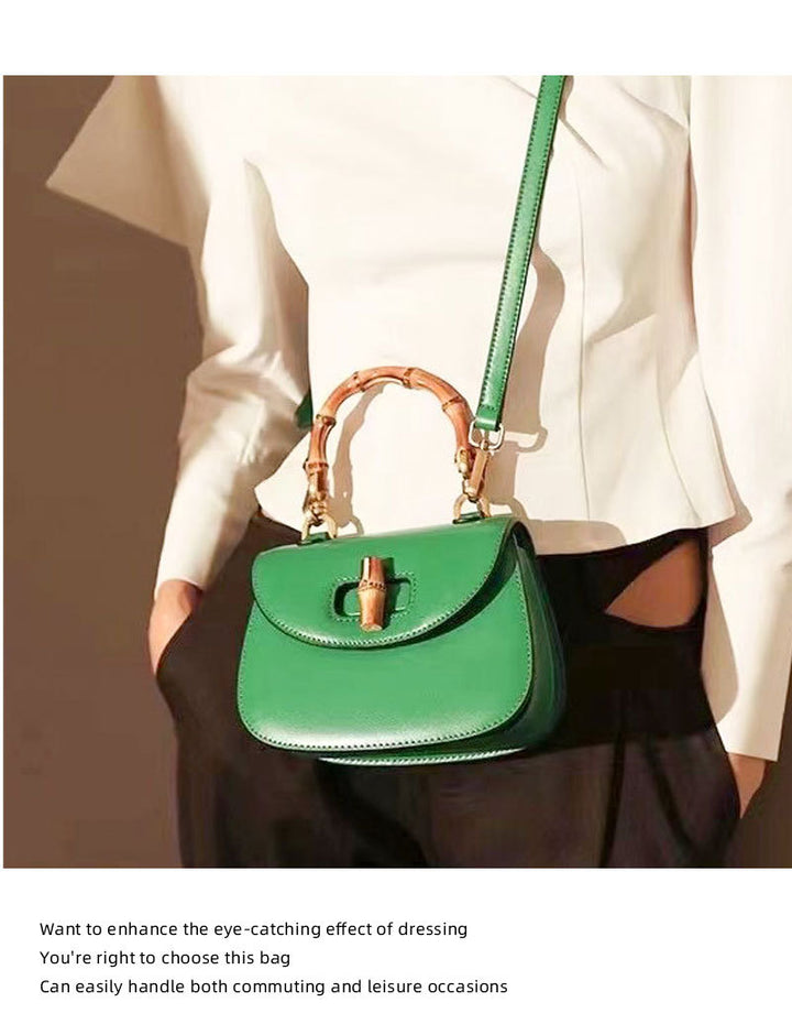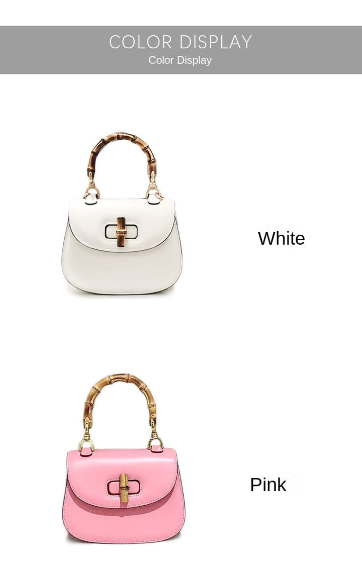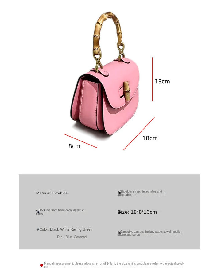 Compact yet functional (18x13x8cm), its ergonomic shape comfortably fits your phone, wallet, and daily essentials.The versatile carrying options include an elegant hand-carry using the signature bamboo handle, a chic shoulder bag, or a convenient crossbody style.