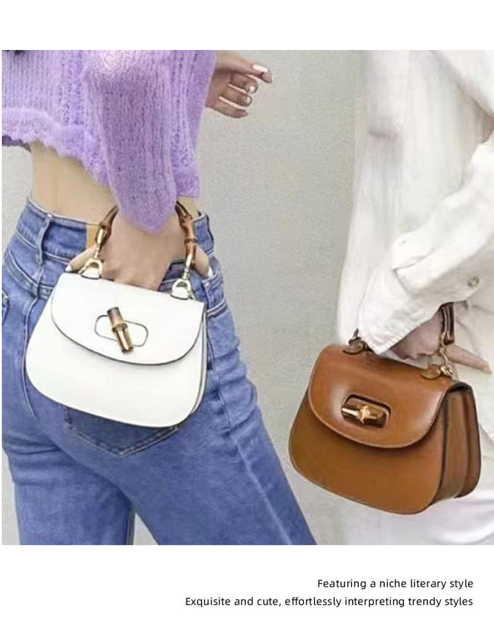 Discover understated elegance with our Indie Chic Bamboo Saddle Bag.This cross-border new arrival features a distinctive bamboo handle, setting it apart with unique craftsmanship.The bag combines a vintage saddle silhouette with minimalist modern design, finished in premium materials for a luxurious, textured feel.