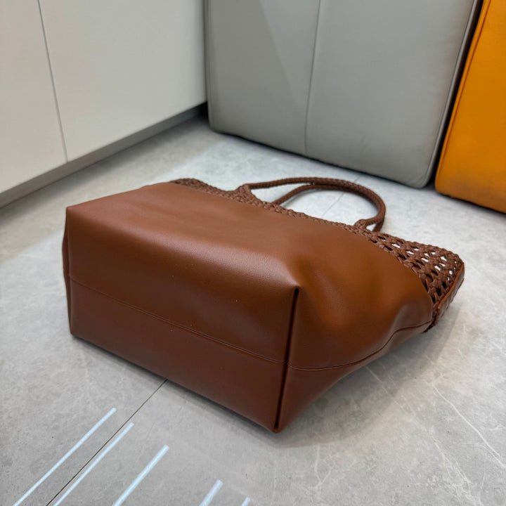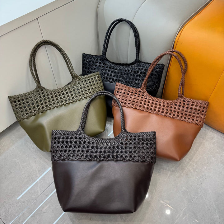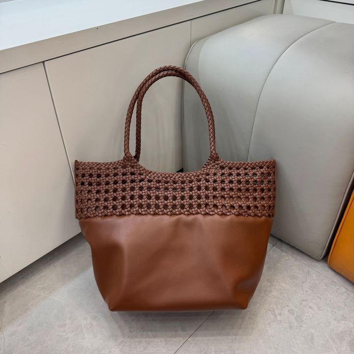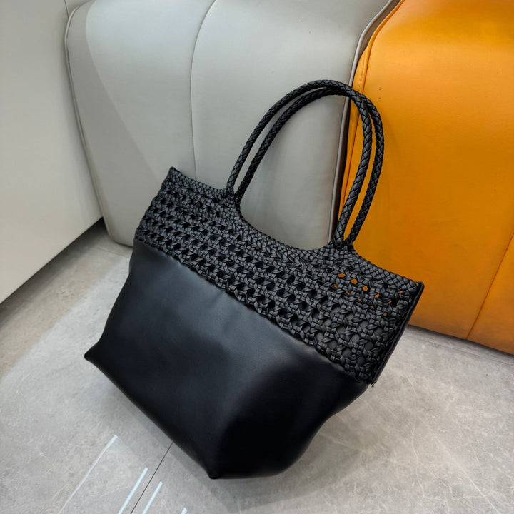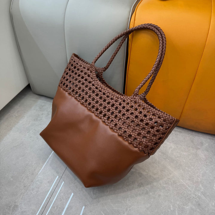 Fashion Hollow Tote Bag Genuine Leather Large Shoulder Underarm Basket Bag for Women