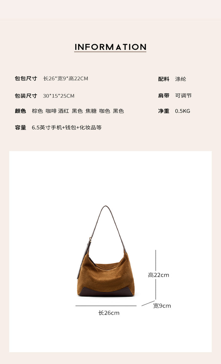 Frosted Suede Dumpling Bag Commuting Casual Handheld Crossbody Bag for Women