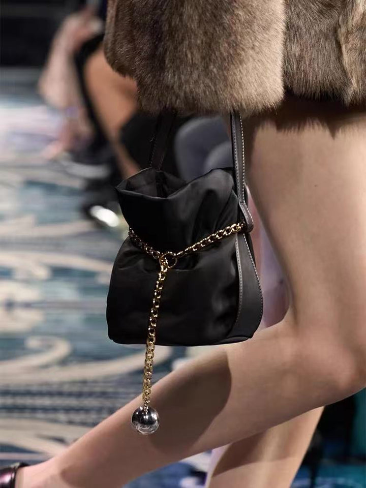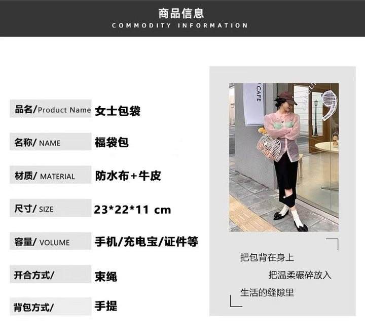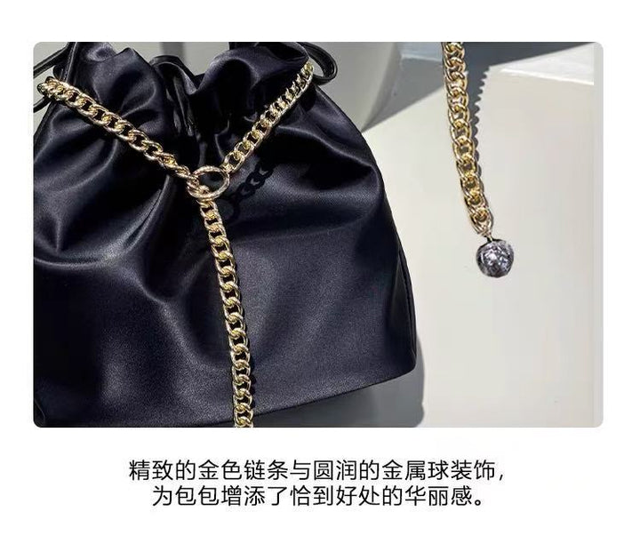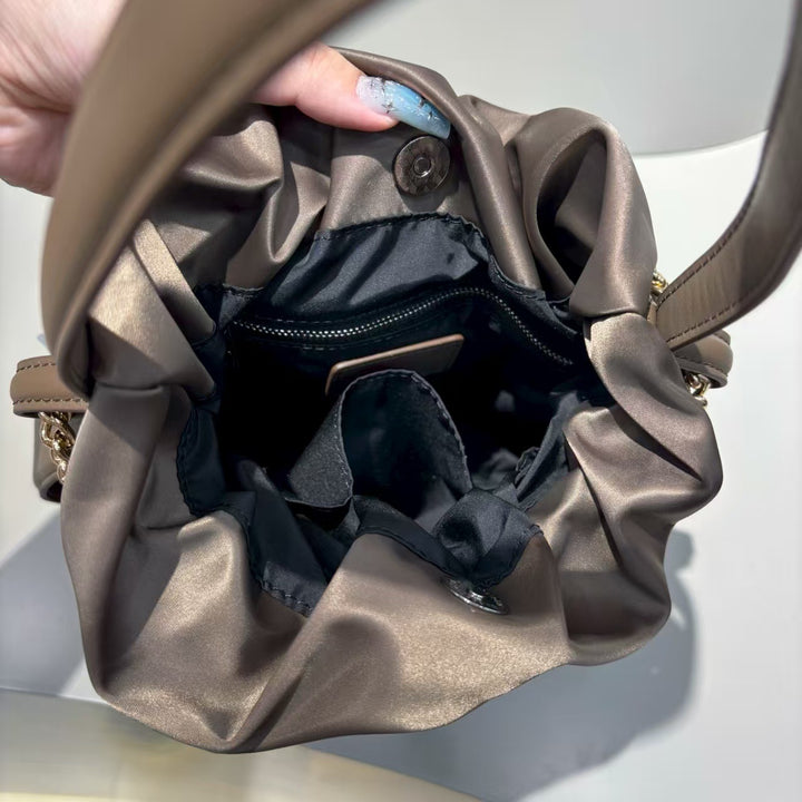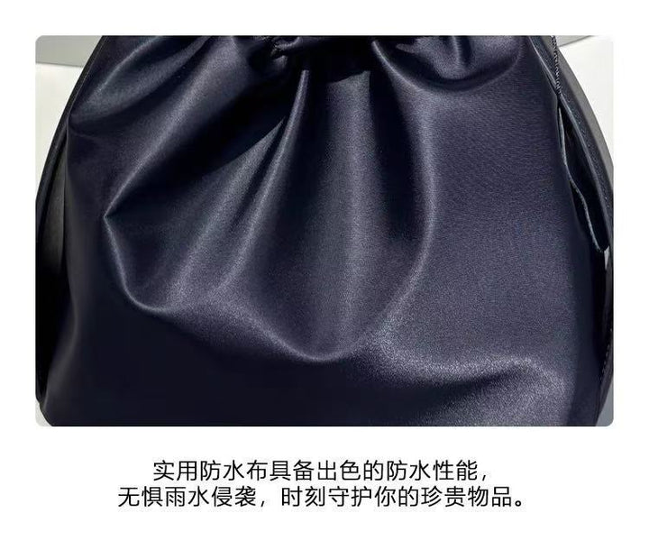 New Silk Waterproof Fabric Lucky Bag Cowhide Crossbody Bucket Bag