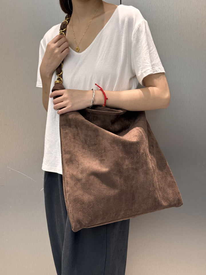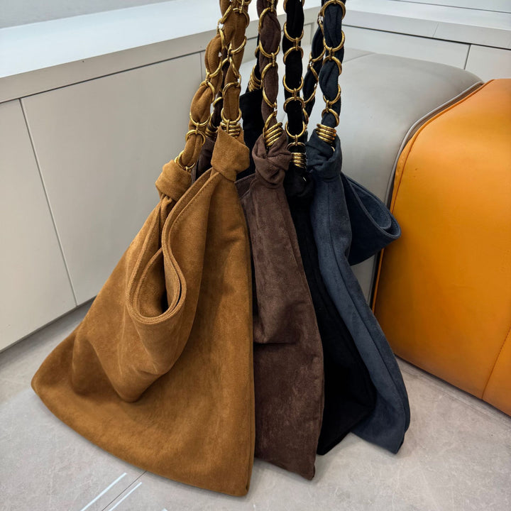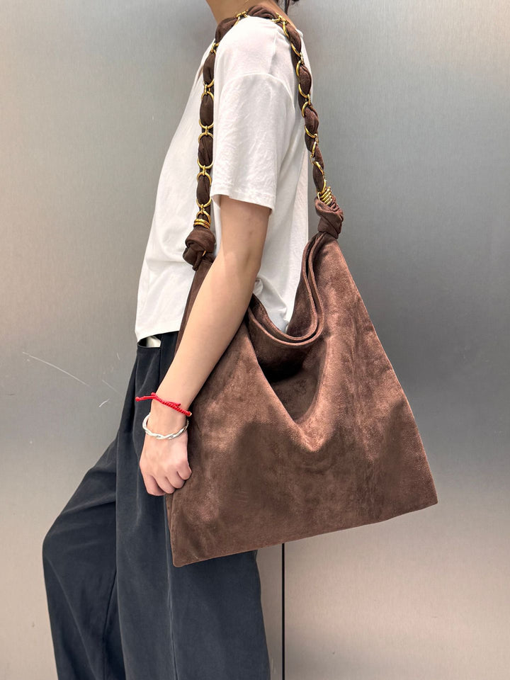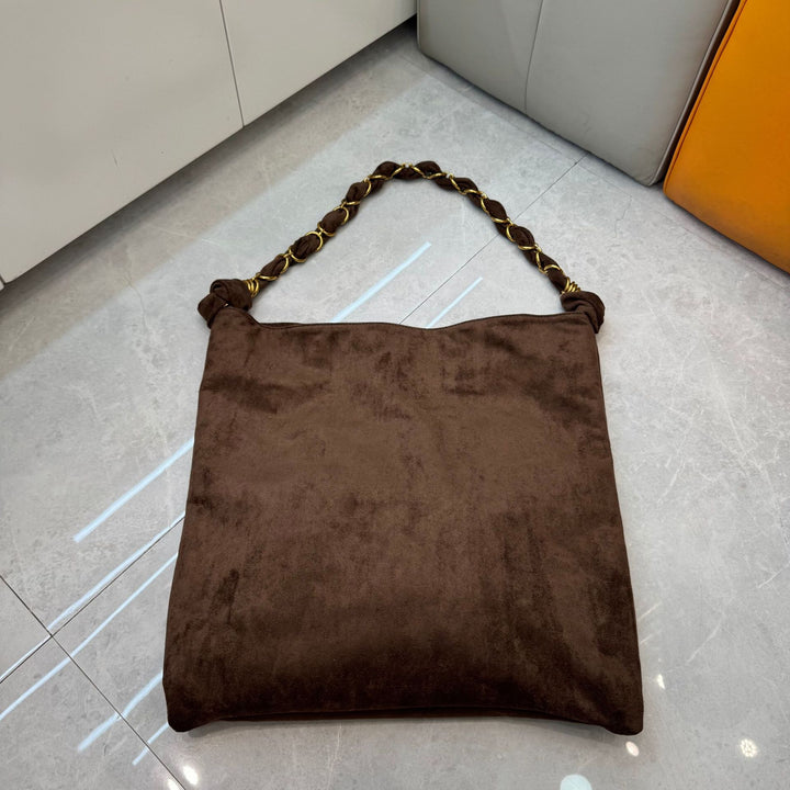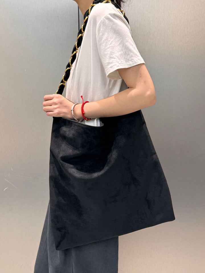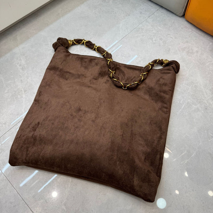 A stylish and practical corduroy tote with a retro chain strap, perfect for effortless everyday wear.This spacious bag offers a relaxed, slouchy silhouette with ample room for work or leisure.Yumuşak, dokulu kadifeden üretilmiş, rahat bir sonbahar-kış havası sunan ürün, ayarlanabilir omuz askısı ile çapraz veya tek omuzda taşınabilirIdeal for work commutes or casual outings, blending vintage charm with modern functionality.