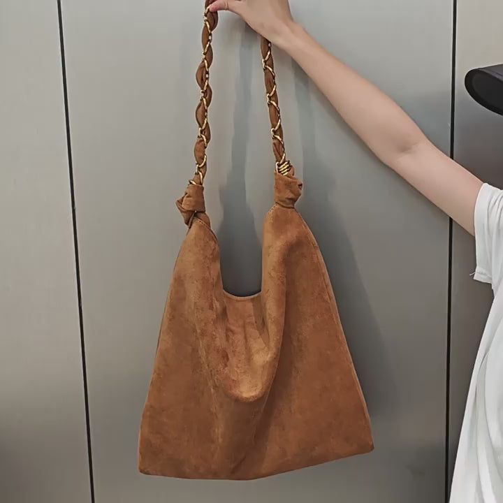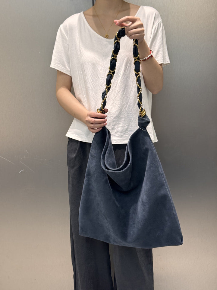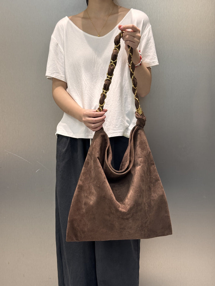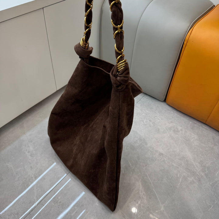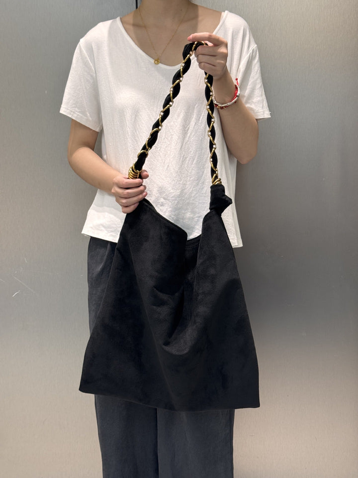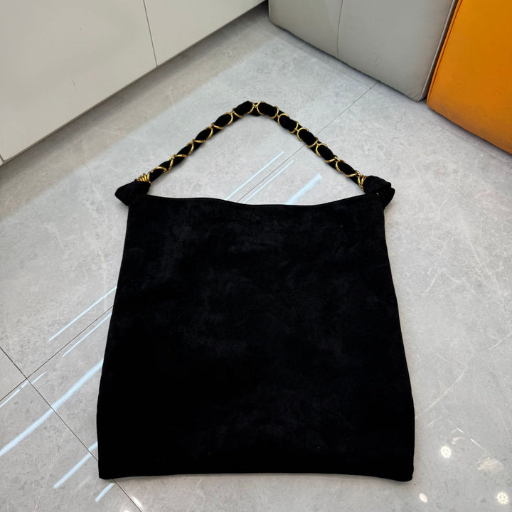 A stylish and practical corduroy tote with a retro chain strap, perfect for effortless everyday wear.This spacious bag offers a relaxed, slouchy silhouette with ample room for work or leisure.Yumuşak, dokulu kadifeden üretilmiş, rahat bir sonbahar-kış havası sunan ürün, ayarlanabilir omuz askısı ile çapraz veya tek omuzda taşınabilirIdeal for work commutes or casual outings, blending vintage charm with modern functionality.